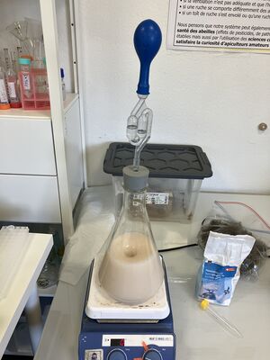5 big culture flasks, the magnetic stir bars and magnetic stirring modules (one needed to be replaced...and we luckily found one more), tubes and bubblers all came together well.