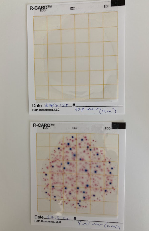 l'eau du robinet donne pas les colonies, normalement, l'eau du rivière peut avoir beaucoup de bactéries bioindicatrices.