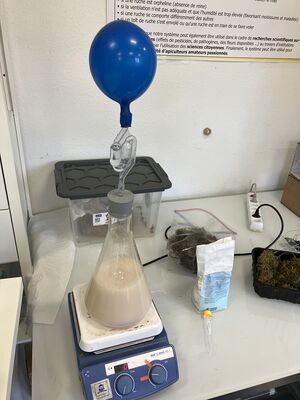 5 big culture flasks, the magnetic stir bars and magnetic stirring modules (one needed to be replaced...and we luckily found one more), tubes and bubblers all came together well.